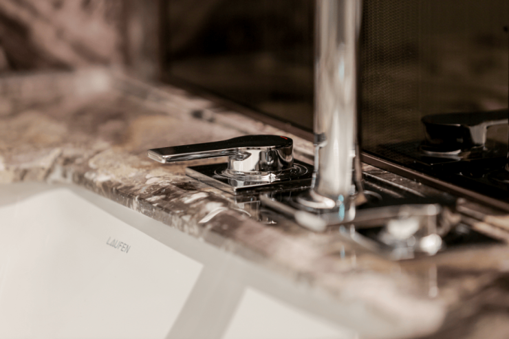 项目还用了这些高档品牌中的顶配产品,比如马赛克排布版本灶台、大容量双开门冰箱、唯一带高温自洁功能的蒸烤一体机高端系列