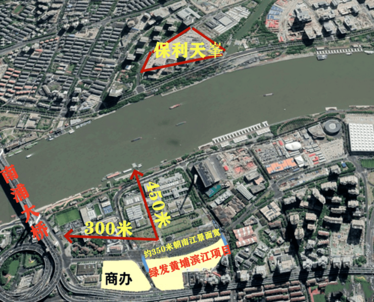 项目地块位于黄浦区的世博滨江板块,紧邻内环高架中山南路,距离黄浦江仅450米左右。南向瞰江方向视野开阔,没有高大建筑物阻挡,和对岸的保利世博项目可以隔江对望了。