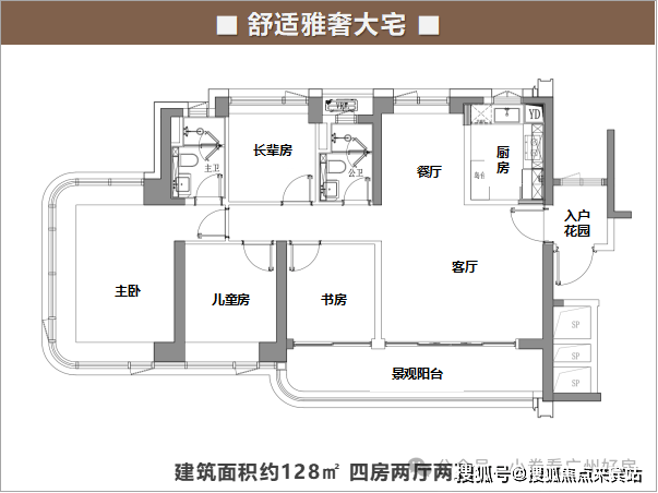 128㎡四房:经典竖厅设计,客厅开间达4.2米,主卧带独立衣帽间,适合三代同堂家庭;