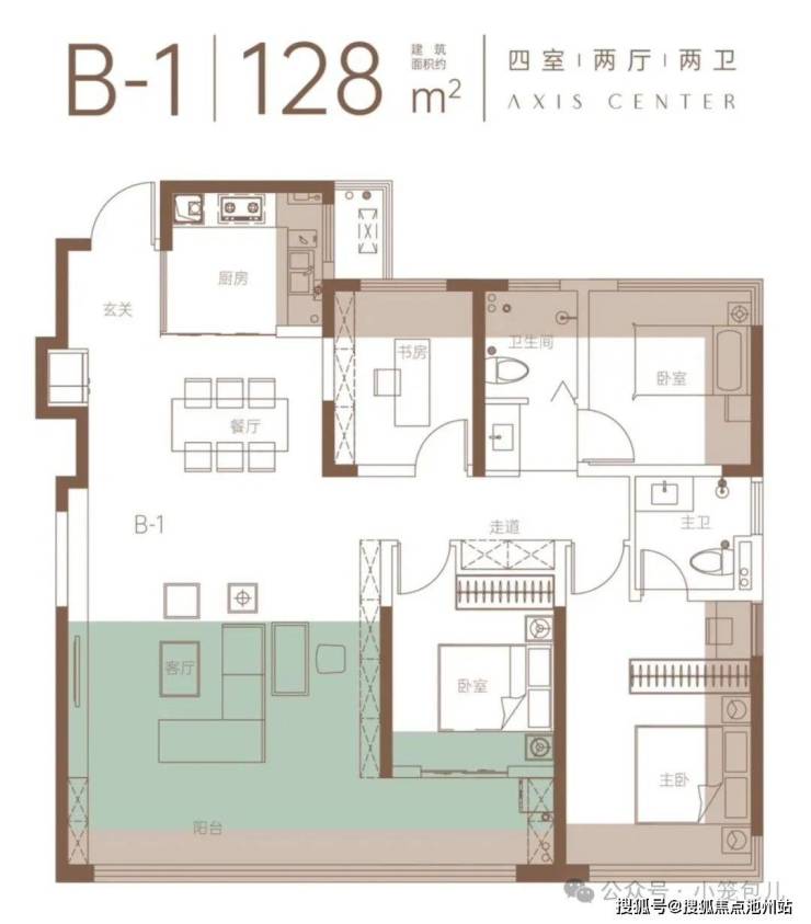128m²126套,得房率100%