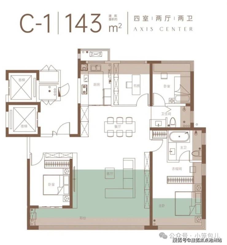 143m²264套,得房率100%