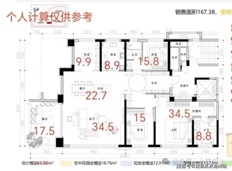 167m²64套,得房率110%