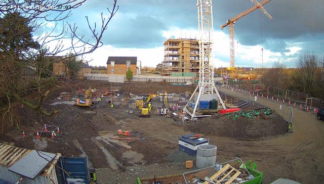 Northwood养老院项目—— 总成本为2150万欧元,建成后为一幢五层楼的养老院,预计将有总共118个床位,已于2017年底完成招募,并于今年十月正式开工。以下为施工现场的实时监控摄像机拍摄的画面: