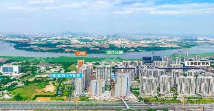 项目距离地铁4号线新造站约1公里左右,步行需要15分钟左右,不算很近,夏天的话,这个步行距离还是比较难接受的,乘坐4号线1站可达大学城、3站万博、4站琶洲、5站金融城。
