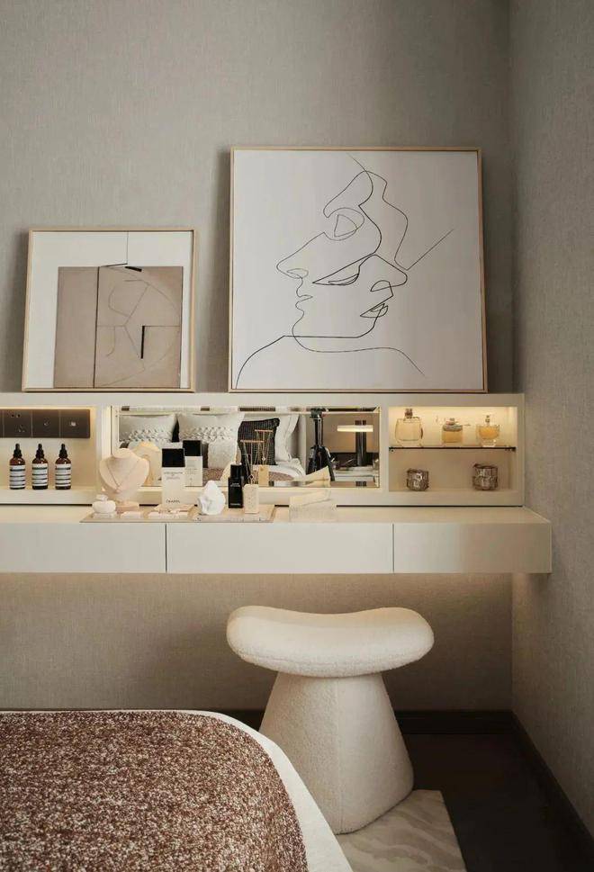 当你从客厅缓缓走向卧室时,光线巧妙地逐渐从明亮转为微暗,如同自然界的日落一般,这样的设计让人的心情也随之变得宁静而平和。柔和的灯光洒在卧室的每一个角落,形成点点晕散的感觉,宛如星空般梦幻。