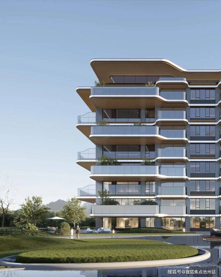 建筑立面以灵动的白色金属线条勾勒出悬浮晶体般的简约形态,精选铝板与全景落地玻璃幕墙搭配,加上流线型曲面转角工艺,在光影变幻中演绎出丝绸般的建筑肌理,成就当代极简主义的美学典范。