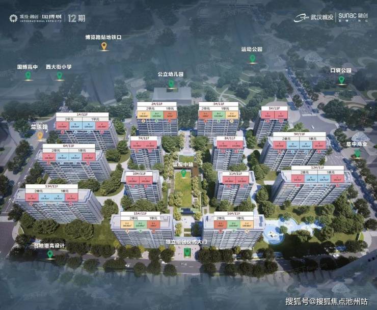 城投融创国博城,原案名为武汉国博新城,项目总规划面积700万方,住宅部分总建面约460万方,分C\D地块,共13期开发,1-7期已交付,10期售罄,8、9期有少量大户型在售,目前主推的是11、12期,13期待开发,分别是D11、D12、D13号地块。