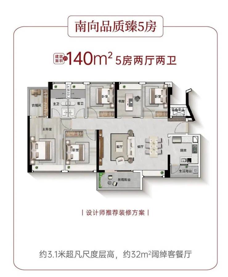 户型的迭代升级,带来的不仅是空间尺度的跃升,更是生活质感的全面焕新。建面约88-140㎡南向阔景舒居,以尺度与巧思,重构理想生活的模样: