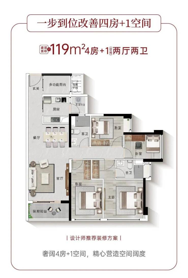 ·错过难再!建面约119㎡南向4房+1空间