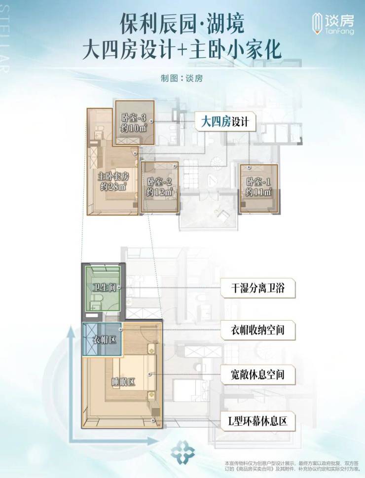 同时,大四房的格局巧妙规划,为孩童预留成长天地,为老人提供安静居所,甚至还能打造一间书房或家庭厅。