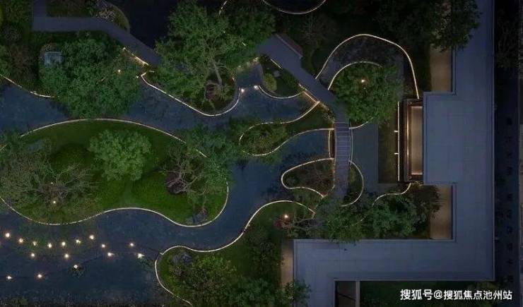 后场水苑从南通江海文化和六桥文化汲取灵感,结合山林、江海、绿岛等元素,将南通的闲适和对造园理念的追求汇聚于空间的诗情画意中,空间收放有致,打造无界森林艺术居所。