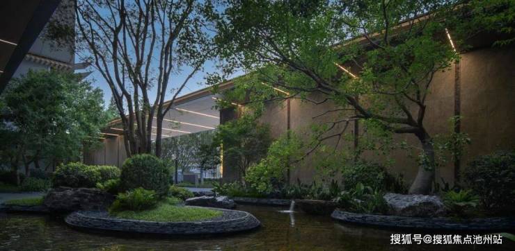 出则繁华,入则宁静。穿过门廊信步庭中,感受奇石、芳木、理水之境,内庭空间不仅仅是单纯的步入,更多的是停留赏景,从而产生情感的归属。合院分为旱境和水境,一动一静,为归家带来无限遐想和品质体验。多种稀珍树木,合院门廊,江海文化演绎,重现世家记忆。