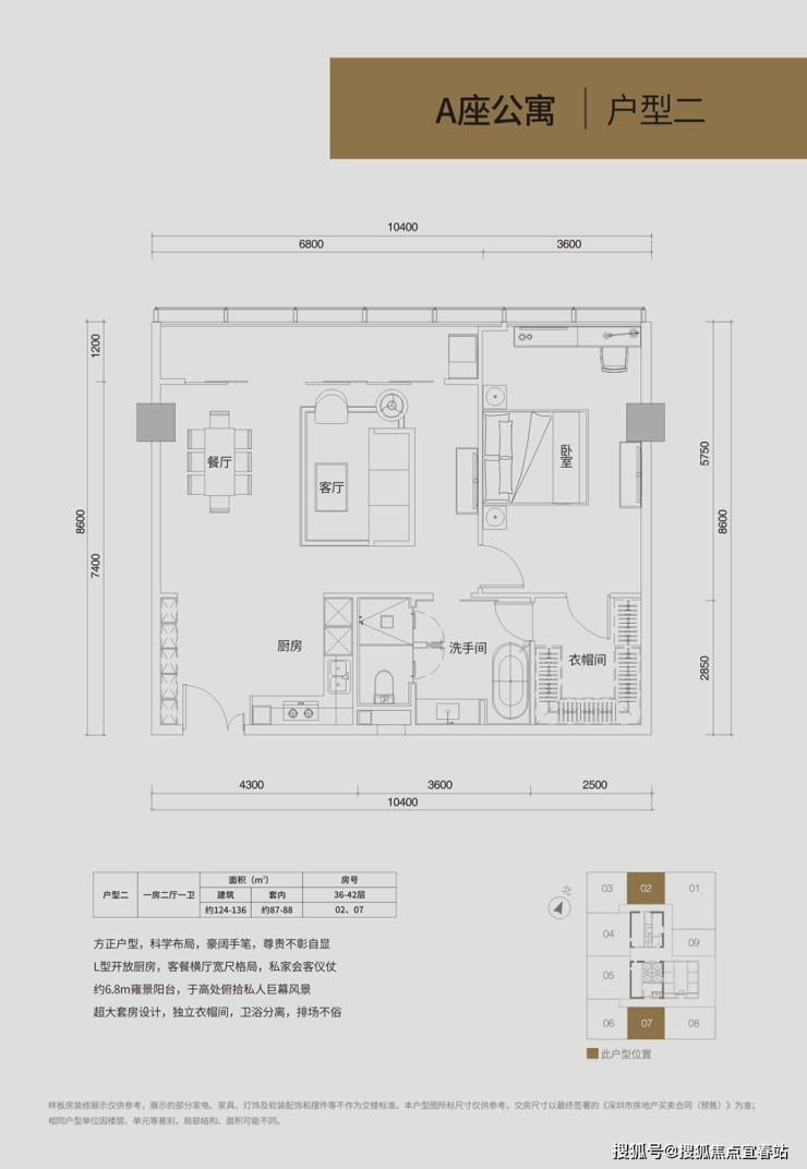 推出的产品是位于6A、6B,其中6A栋为6-34层为办公产品,面积段为148-2300㎡,36-42层是公寓,公寓面积段为124-310㎡,6B栋6-9楼为酒店,10-42层为公寓,户型面积段以中小面积为主,面积区间为49-118㎡。