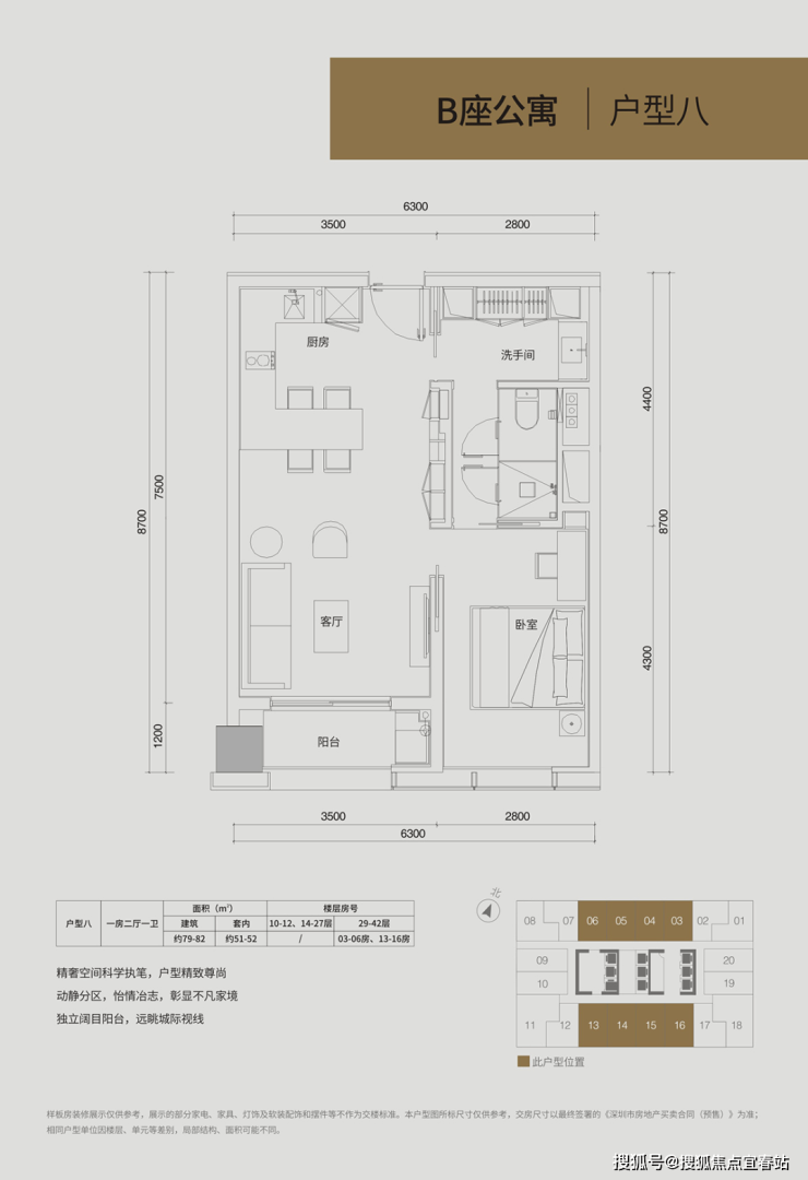 ▲建筑面积约79-82平,阔绰端头户型,3.6m高厅罕贵格局;约10m客餐厅横厅设计,将山湖园景纳入待客风度;三房雍容布局,独立主卧套房,主卫双洗手盆设计,尊崇舒适;双阳台设计,于城市上空赏味塔尖优雅。