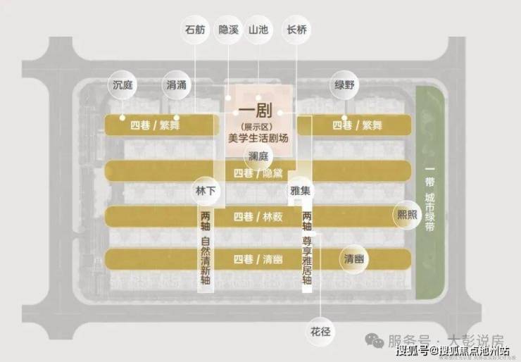 琨悦里承袭玉山草堂造景手法,打造一剧一带两轴四巷十二景园林景观,政府规划约2700㎡城市活力公园(红线外规划),约500米环形跑道、雅居会客厅,五重礼序层层递进,展现诗画般风雅园境。