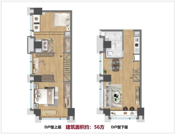 ❼ 阔绰空间,三房尽享:尽管建筑面积仅为56平方米,但边套户型却巧妙地设计成了三房单门loft结构。这种设计不仅充分利用了每一寸空间,更让居住者感受到了前所未有的宽敞与舒适。在这里,您可以尽情享受生活的每一个瞬间。