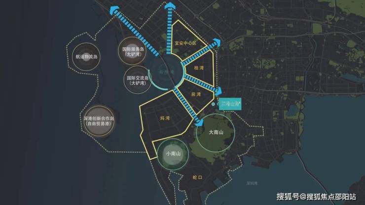 规划定位:世界前海、合作之区、未来新城整体规划:湾区一体化、一湾/两山/五区/四岛规划特色:聚湾营城/治水亲水/添绿植林/减量提质