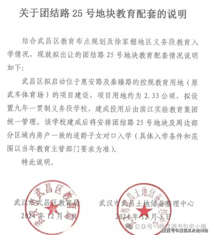 配建九年一贯制学校,由滨江实验集团统一管理,学区已定。该学校建成后将安排团结路25号地块(华润团结路地块)及周边部分区域内房户一致的适龄子女对口入学。