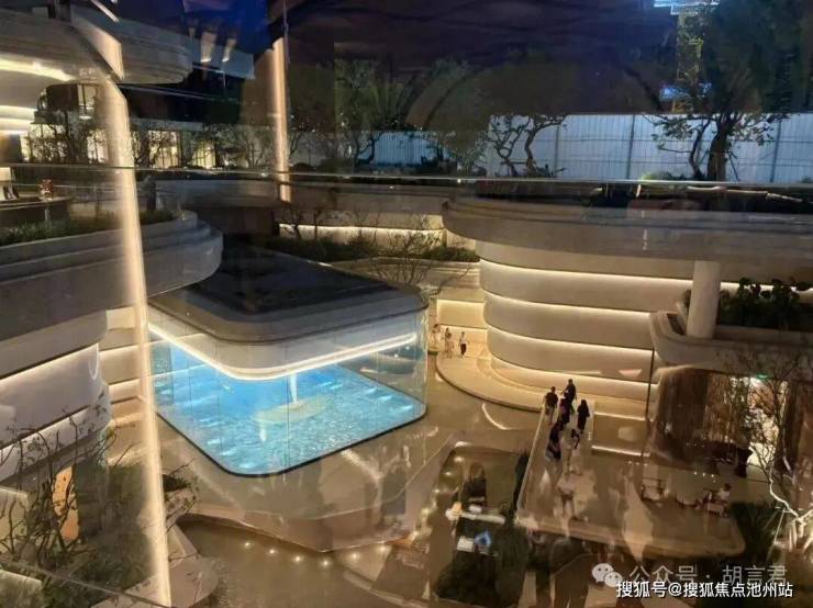 核心庭院“峡谷景观”的灯光照明系统这次也弄好了,在它的照耀下,270度弧形落地窗的无边界泳池也更上镜了。