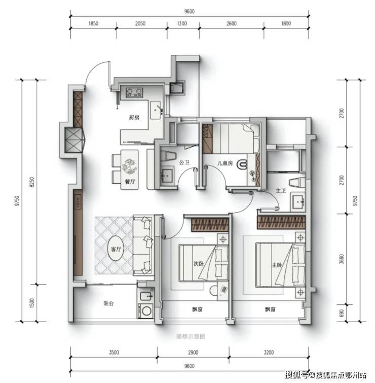 建面约112㎡四房,罕见三阳台设计,LDKB一体化 + 270°环幕视野,直接对标市面125㎡ + 户型。
