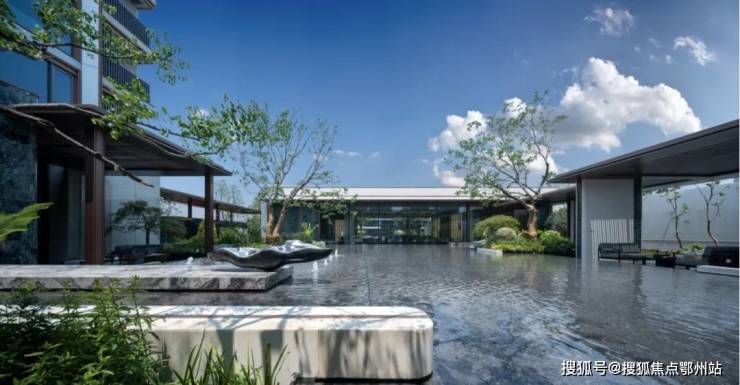 约2000㎡镜面摩登水院热带泳池,搭配加拿利海枣树阵、风雨连廊,让你下楼就能享受巴厘岛式的度假体验。
