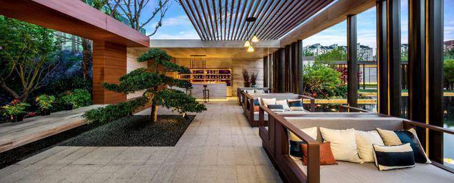 ▷在园林设计上,以水的点线面完成收集、净化、观赏、演化以及整体设计框架,用绿植的观赏、调节、隔离完做到完美的生态、季相、阵列。建筑上面也是以水流+磐石+纹理将社区绿心贯彻到底,提取自然中的水与绿,将自然中水的形态,磐石的纹理作为设计元素,营造了绿色、生态的精品空间场所。总之,龙湖·天鉅希望将此打造成一个龙湖未来系社区中心的经典产品,让人们在此实现工作、商业、文化、教育、居住一体化。