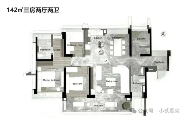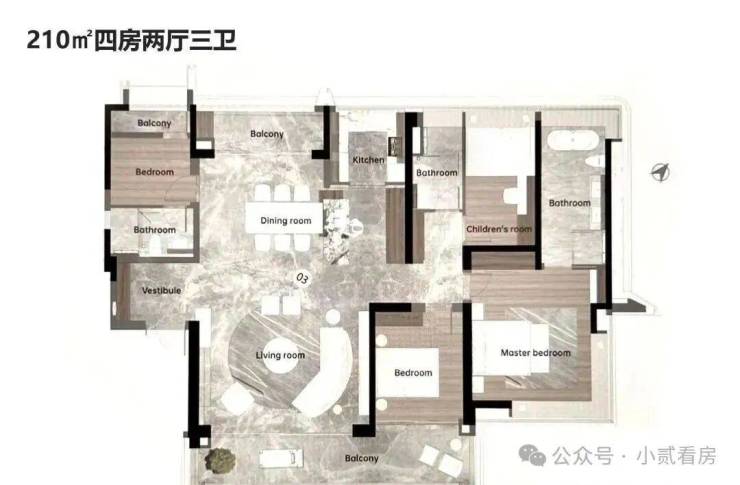 品越华府的户型方正,大阳台、飘窗、专梯一个不少。