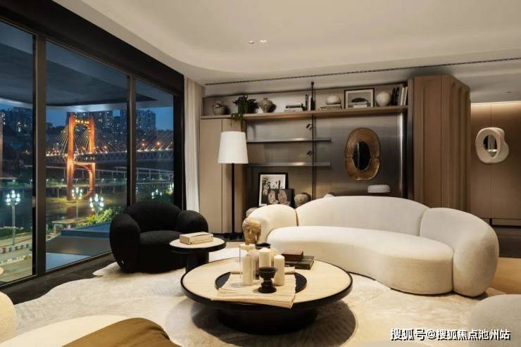 非艺术不宸系,嘉宸汲取世界级滨水豪宅建筑的微弧艺术灵感,融入嘉陵江的江水流线,建筑整体采用270°湾流式曲线立面,柔和流畅的曲线,更加映衬北滨头排的江水灵动,为两江四岸增添更多艺术神彩。
