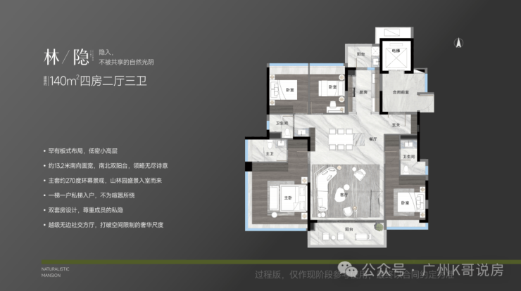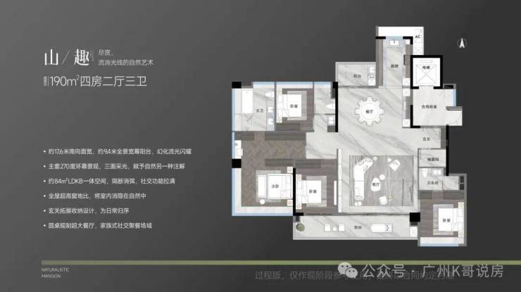 现在越秀·观樾,中轴园景建面约140㎡户型,190㎡户型,将能更好地满足迸发的改善置换需求。