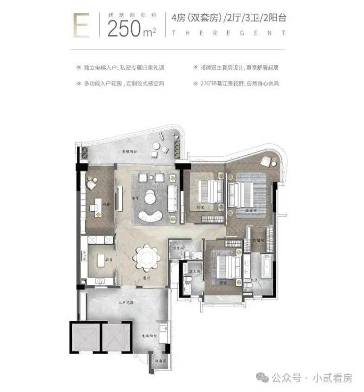 『天启』组团面积约140-250㎡环幕临江大平层,坐拥江景第一排,眺望小蛮腰,享500米宽阔无遮挡江景视野,并邀请三大全球知名设计大师倾力打造,并配备12大国际一线品牌交标,专梯专户四房双套房设计,世界灵感前沿作品礼献广州!