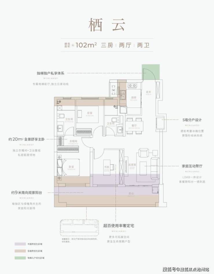 除了电梯前室、飘窗等优化面积外,阳台+花池的可优化面积非常大,得房率高。