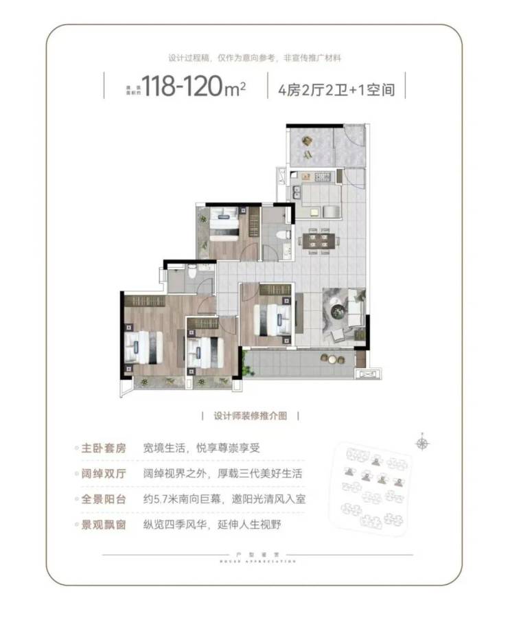 目前主要推出的户型包括84—126㎡的3/4室户型,以及部分在售的96-120平户型。