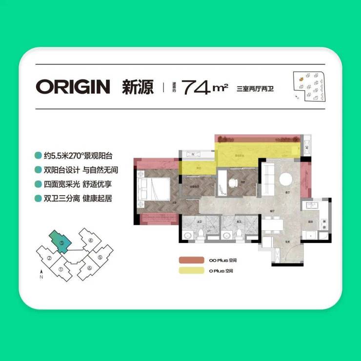 五开间朝南,南北对流双阳台,依山傍水,厅可改6米大开间,主卧近30方,尺度强,一梯两户,小洋房,等电梯时间短。