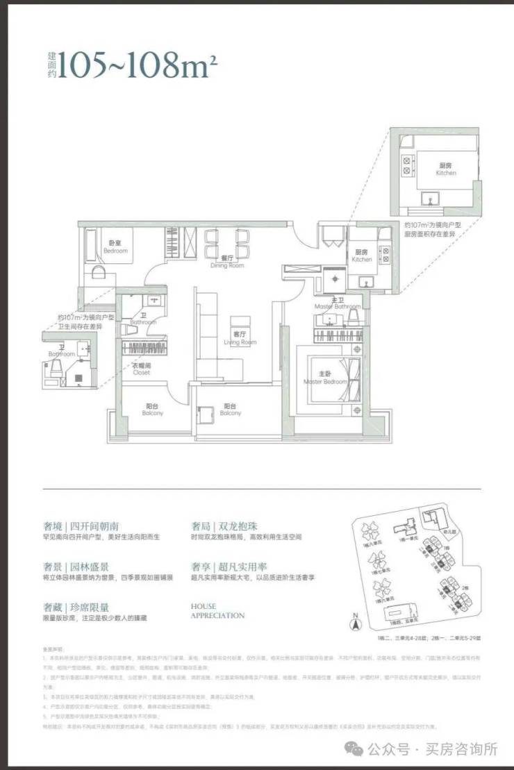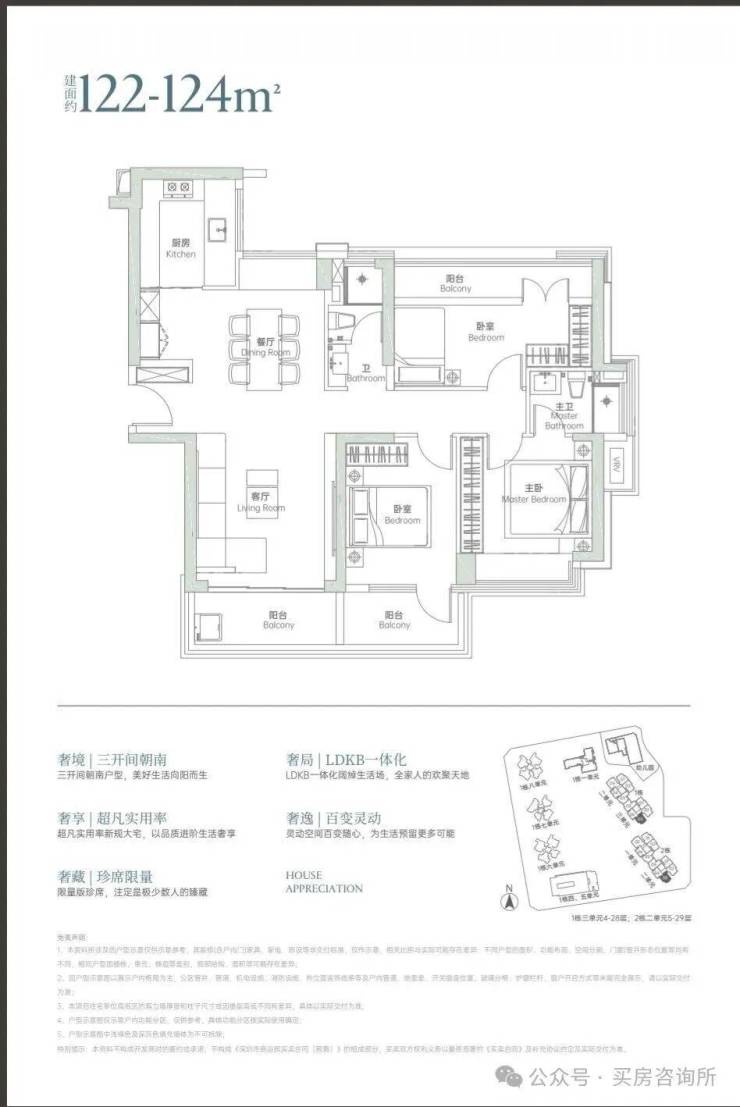 项目首推2-2栋约156套3-6房户型,楼栋分高低区不同设计,低区3梯5户,高区3梯3户。户型采用新规设计,124㎡就能做到四房三卫双套间。