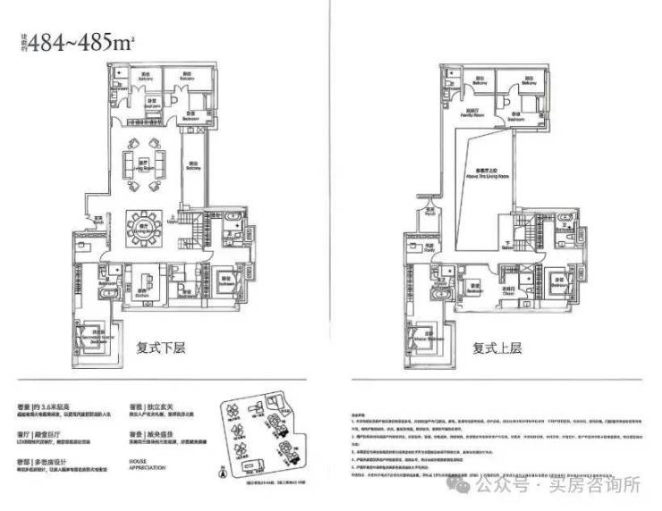 高区复式还有231-233㎡,354-358㎡,484-485㎡三个户型。