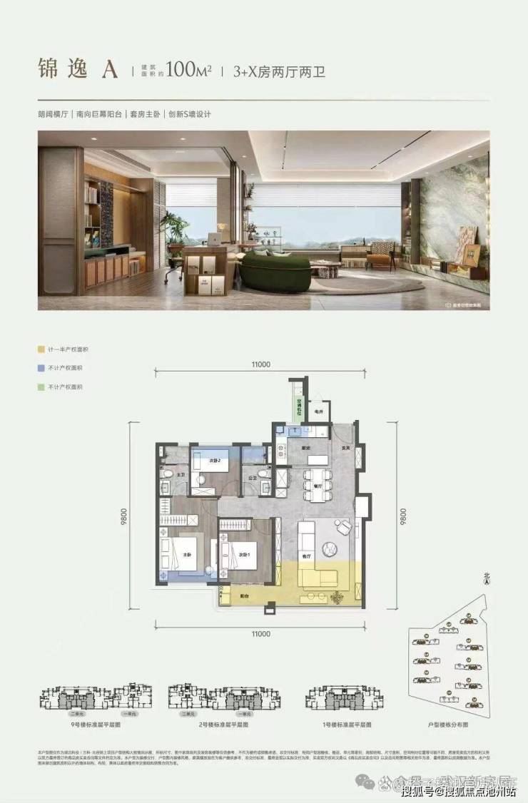 100㎡客厅开间4.8米,得房率97%;