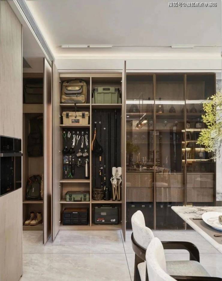 全屋收纳系统, 满足一家老小海纳空间!约2.25mx2.4m的超体量玄关柜,为生活扩容,可容纳约56个20寸行李箱,而玄关柜、岛台、卫生间镜柜、主卧衣帽间等空间,把更多隐藏空间打造成超级收纳功能,让未来的生活井井有条。