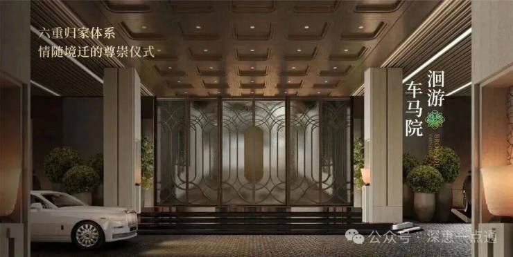 与此同时,洄游车马院、风光驿亭作为纽带串联起门庭与大堂入口,形成静谧尊贵的归家动线。
