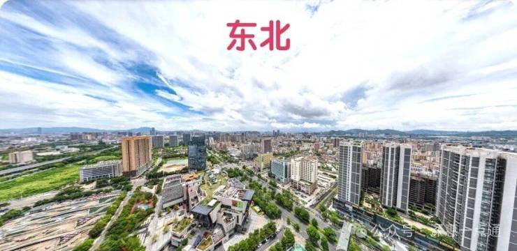 东北:看松岗中心板块方向,朝小区内部,看花园和泳池,受自身2-3栋影响几乎没有视野可言,它最大卖点就是花园景观相对较好。