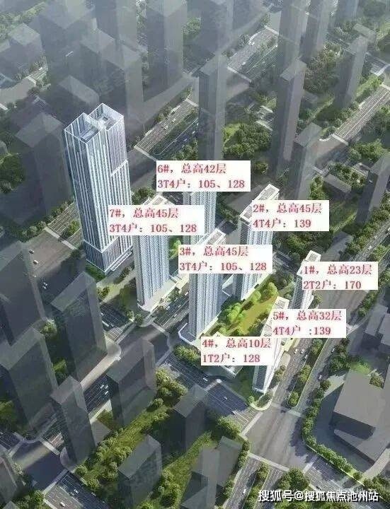 项目分为两期开发:二期包括01、02地块,有8栋住宅、1栋幼儿园和1栋保租房。一期包括03、04地块,有7栋住宅、1栋200米高写字楼和1栋4层商业楼,一期车位配比约1:1.13;预计2027年6月30日毛坯交付。一期7栋住宅为小高层、高层、超高层产品。2#、3#、6#、7#为超高层42层-45层住宅,1#/5#为高层住宅23层-32层、4#为小高层总层高10层。