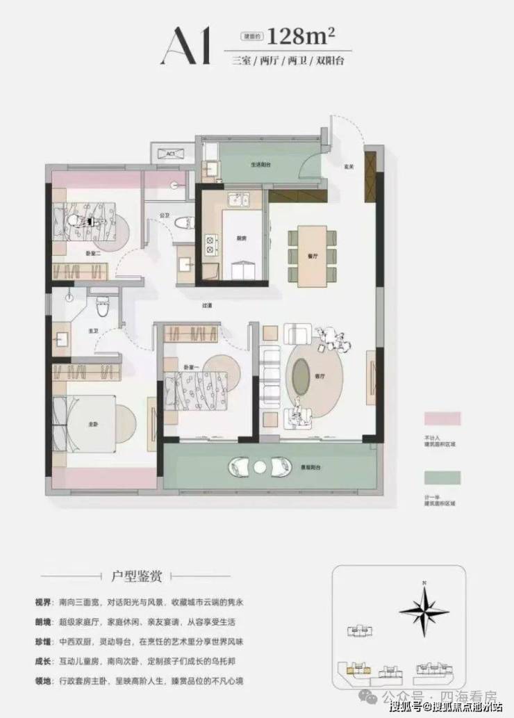 准四代大宅:着眼未来标准,超高得房率,三面宽阳台,日照采光、观景体验俱佳