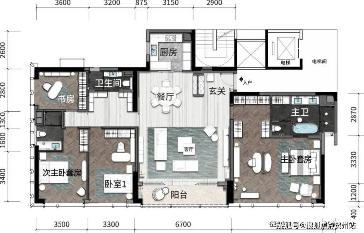 114-119㎡3房2厅2卫南北通透 观山眺海