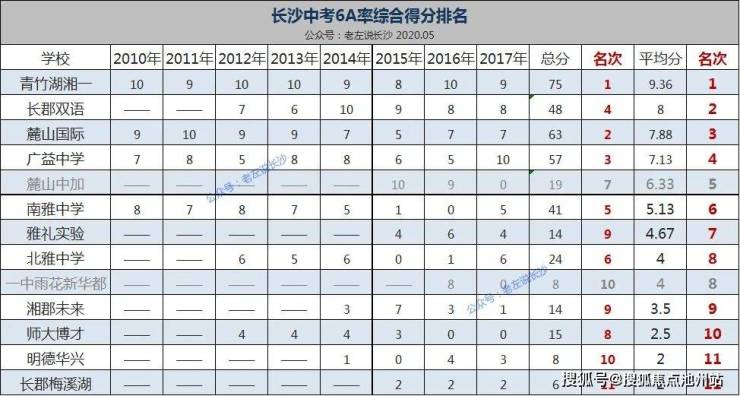 老左曾经从历史成绩的角度,对长沙10大初中的升学率进行了排名,时间范围从2010到2017年,青一名列榜首!