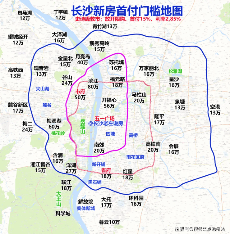 这个楼面价比较低,在这个地段来讲是比较合理的,这里属于开福北-关公湖片区(下图中青竹湖的位置),这个板块发展速度较慢,新房基本都是不带学位的楼盘,均价就是7000左右,经常会卖成现房,可见其热度非常低。