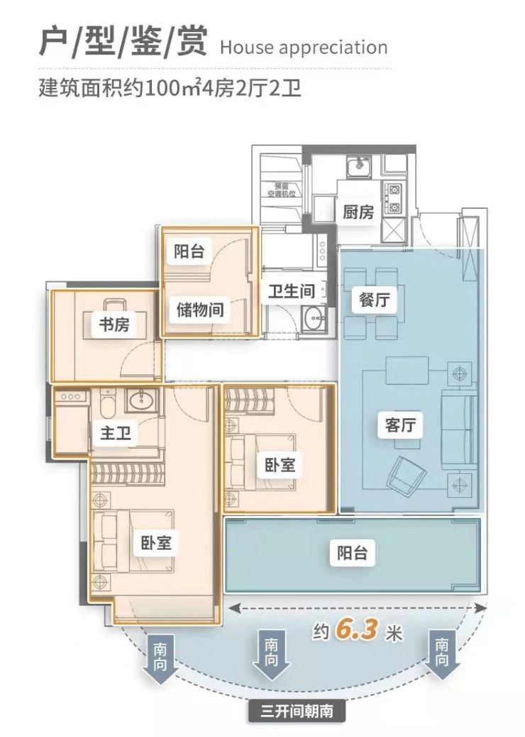 据了解,项目目前主推建筑面积约100-140㎡四房,使用率高达89%,这样的使用率吊打板块不少项目。此外,每个户型均设计有一个超6米的宽境阳台和一个生活阳台,超三米主卧开间,很好地平衡了景观面,兼具采光、观景、通风等功能。