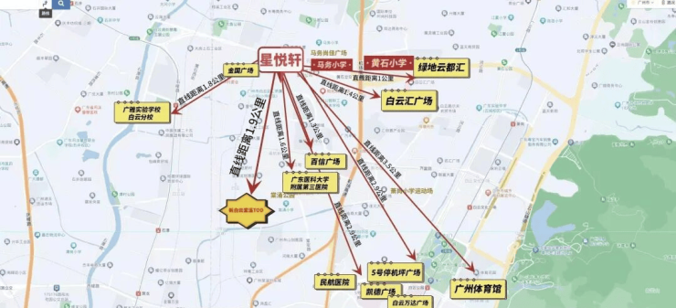 【商业配套】凯德广场、白云万达广场、5号停机坪广场、百信广场、白云汇广场、绿地云都汇、金国广场、马务广场等。