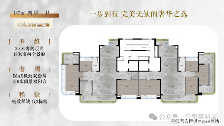 3、建面约187m²央楼王4房