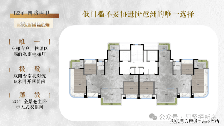【项目户型】建面约122-187㎡T2板式全景舱大平层1、建面约122m²跃升低密4房