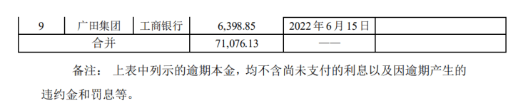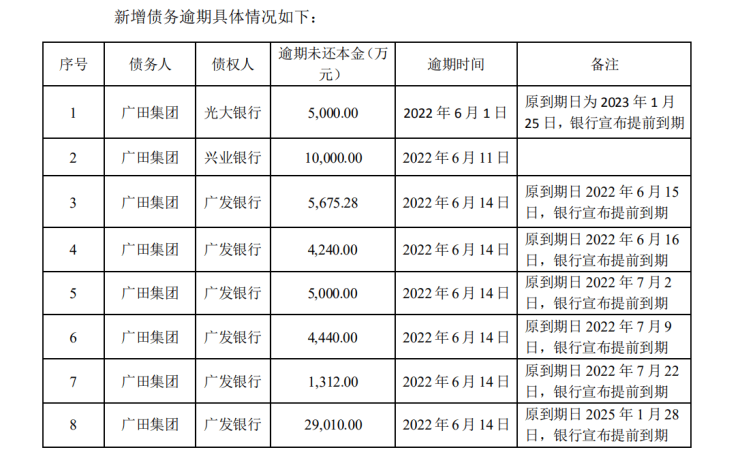公告称,深圳广田集团股份有限公司受排名前列大客户债务危机影响,公司应收账款周转缓慢,公司近期因流动资金紧张出现部分银行债务逾期的情形,除前期已披露债务逾期情况外,截至本公告披露日,新增逾期本金合计42,685.19万元。