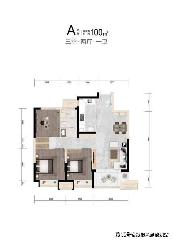 建筑面积约98-120㎡全明三居,南北通透,主卧套房、独立玄关、通厅阳台,满足城市精英对空间与功能的双重期待。